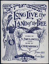 Solomon Smulewitz (1868-1943) and J.M. Rumshisky (1879-1956). "Zei gebensht Du Freie Land" [Long Live the Land of the Free]. New York: Hebrew Publishing Company, 1911. Sheet music cover. Music Division, Library of Congress (50)