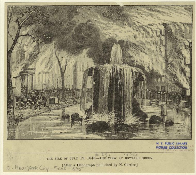 Nathaniel Currier, “The Fire Of July 19, 1845 -- The View At Bowling Green,” Three Decades of NYC, accessed December 13, 2025, http://www.loyolanotredamelib.org/en203/items/show/2.