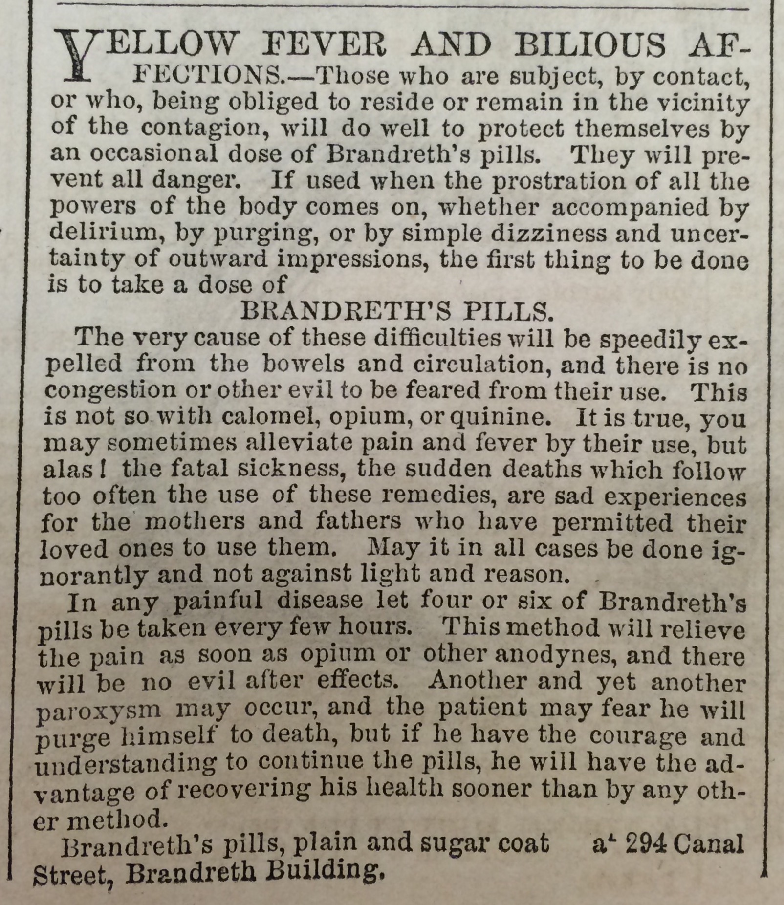 Brandreth’s Pills. Advertisement. Harper’s Weekly. September, 18, 1858: 9. Print