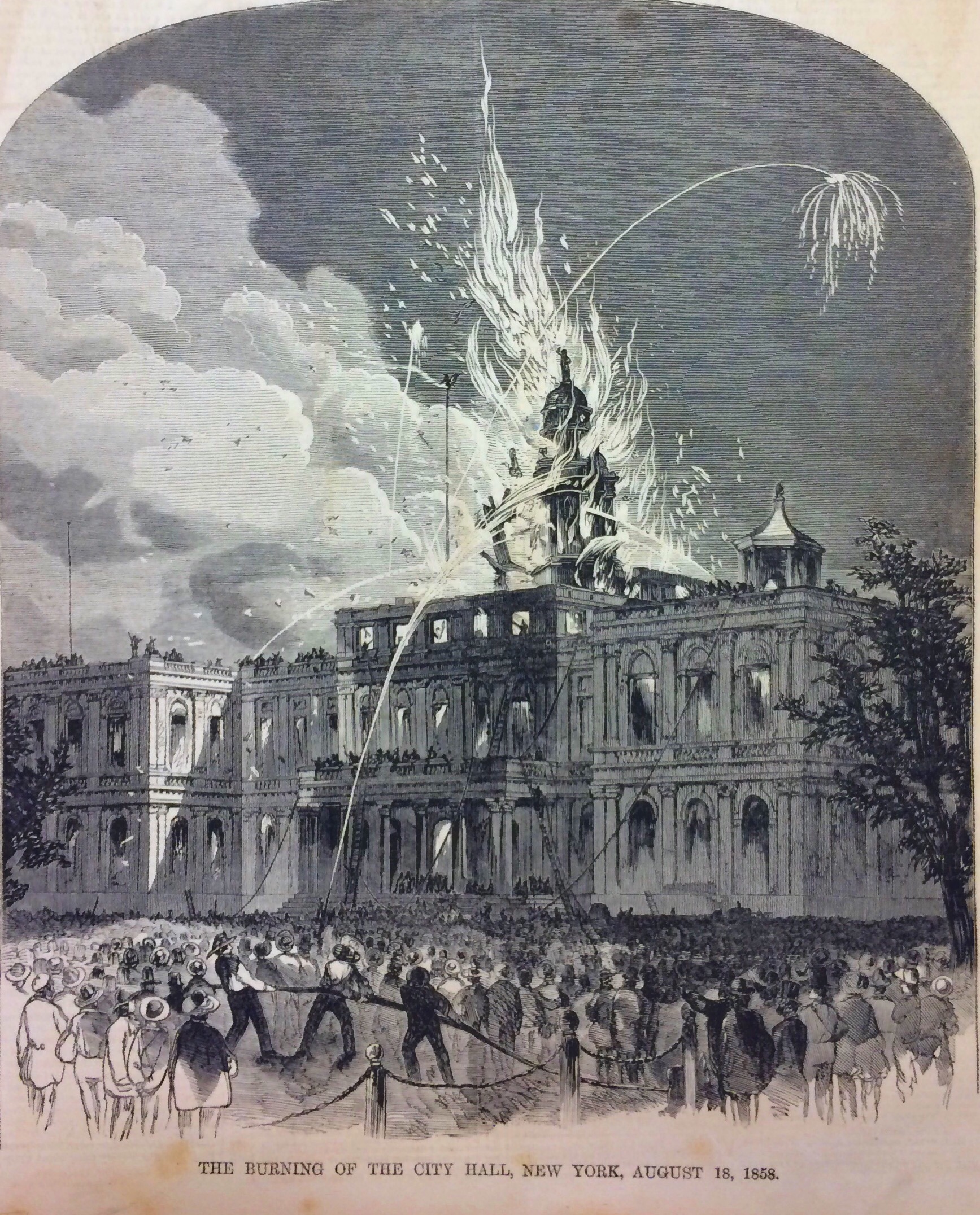 “The Burning of the City Hall, New York, August 18, 1858,” Three Decades of NYC, accessed December 13, 2025, http://www.loyolanotredamelib.org/en203/items/show/6.